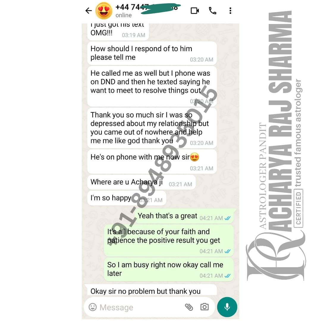 Acharya Raj Sharma is renowned for his expertise in helping individuals reunite with their lost love. His deep understanding of celestial influences equips him to navigate the complexities of love relationships with precision and compassion, offering guidance and solutions to bring back the love that has been lost.