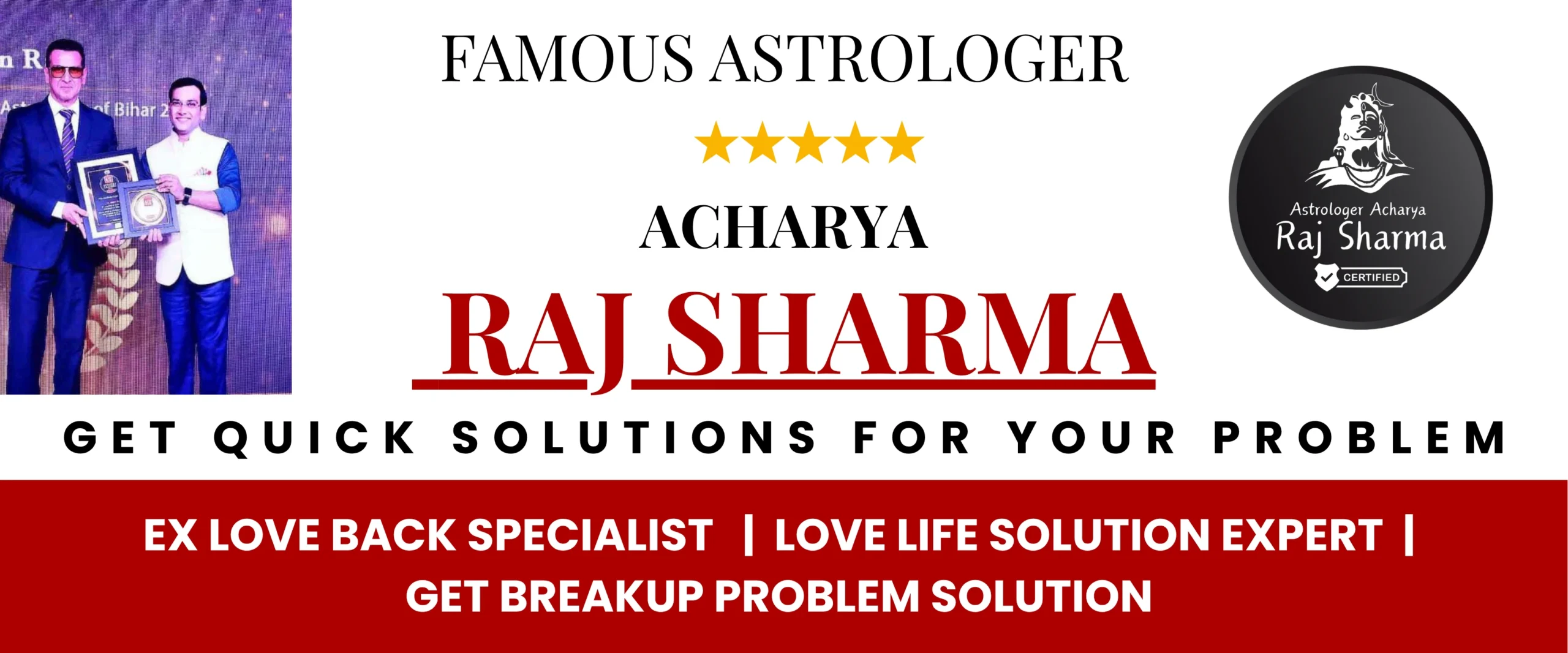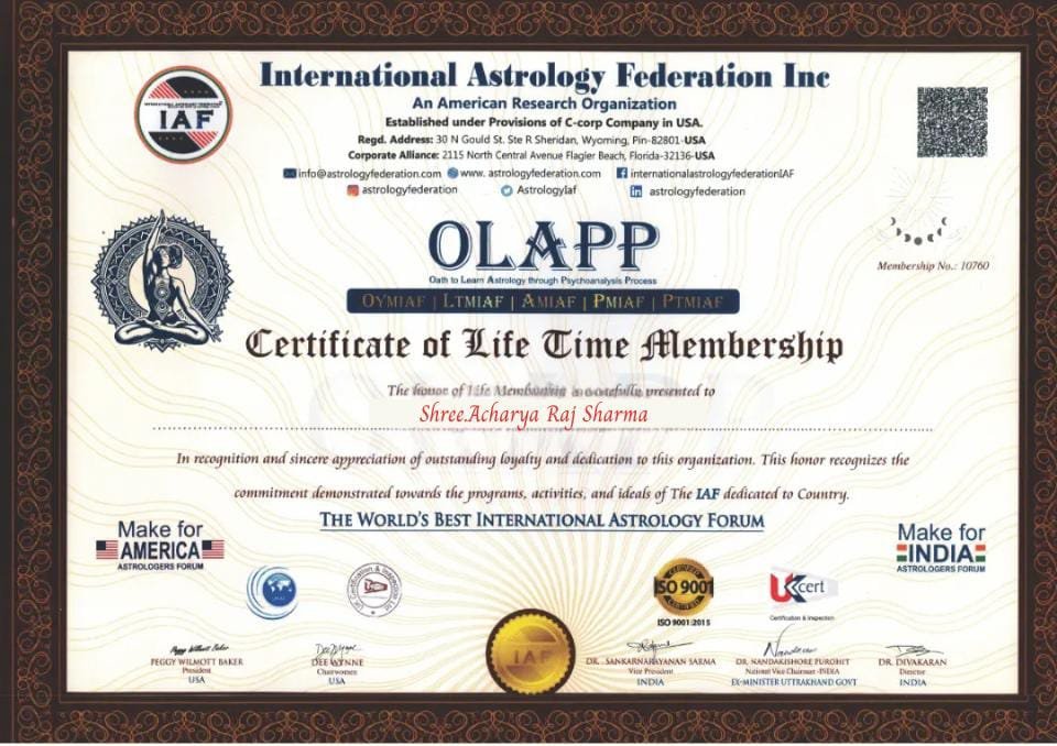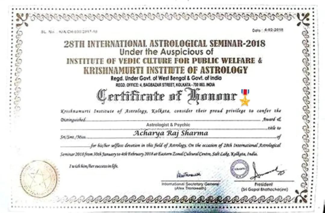 Acharya Raj Sharma Ji is a globally respected astrologer whose profound knowledge has earned him numerous accolades from renowned celebrities and spiritual institutions. With decades of experience in decoding the influence of planetary movements on human life, he has helped thousands navigate challenges in love, career, marriage, and emotional well-being. His mastery in Vedic astrology and intuitive guidance have made him a trusted name across both Eastern and Western circles. Honored with prestigious awards and featured on elite platforms, Acharya Ji continues to transform lives through the divine science of astrology.